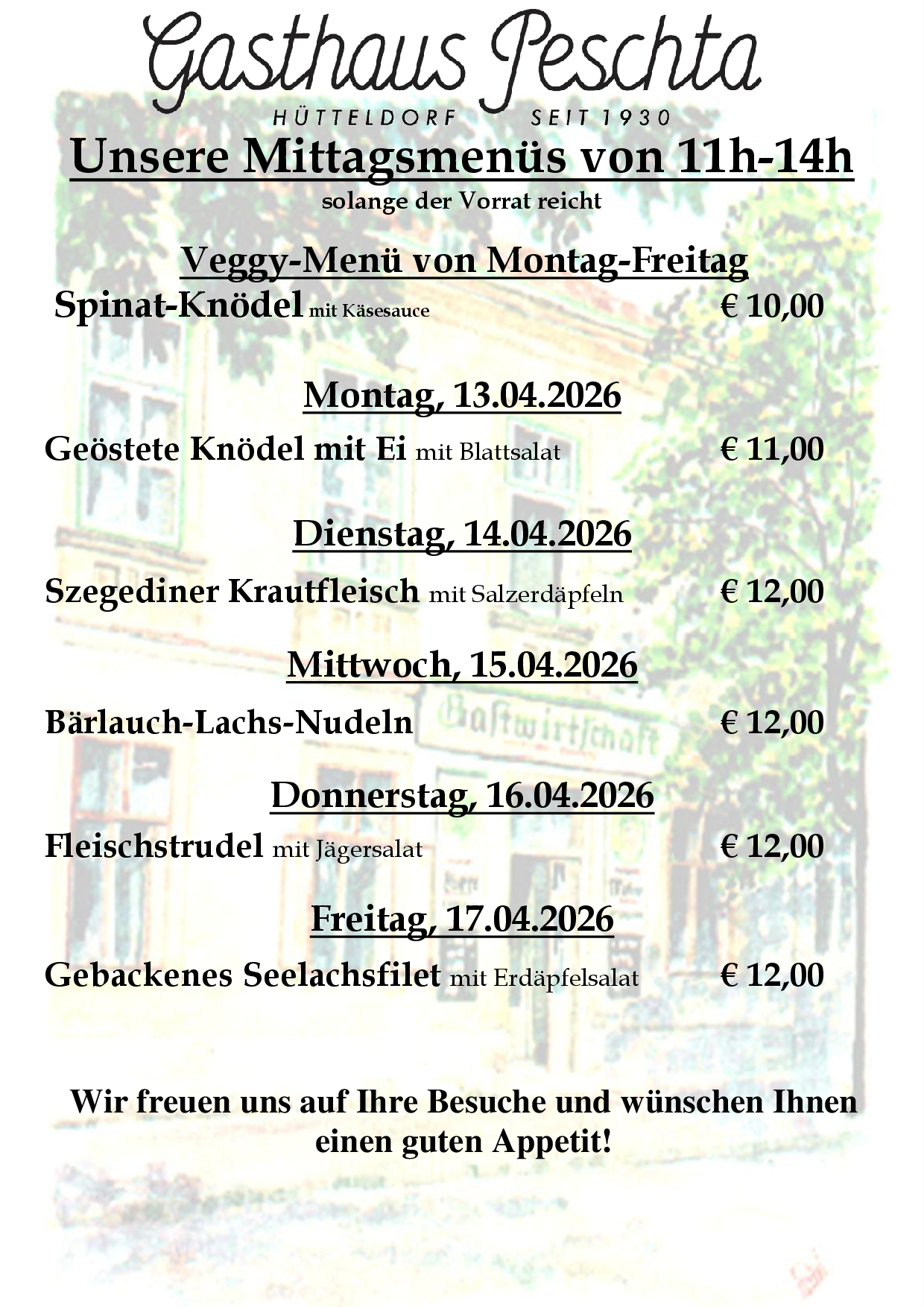 Bereits seit 1930 gibt es unser Gasthaus nun bereits - gegründet von meiner Urgroßmutter Fr. Peschta, weitergeführt von meinen Großeltern Johann und Maria Peschta.